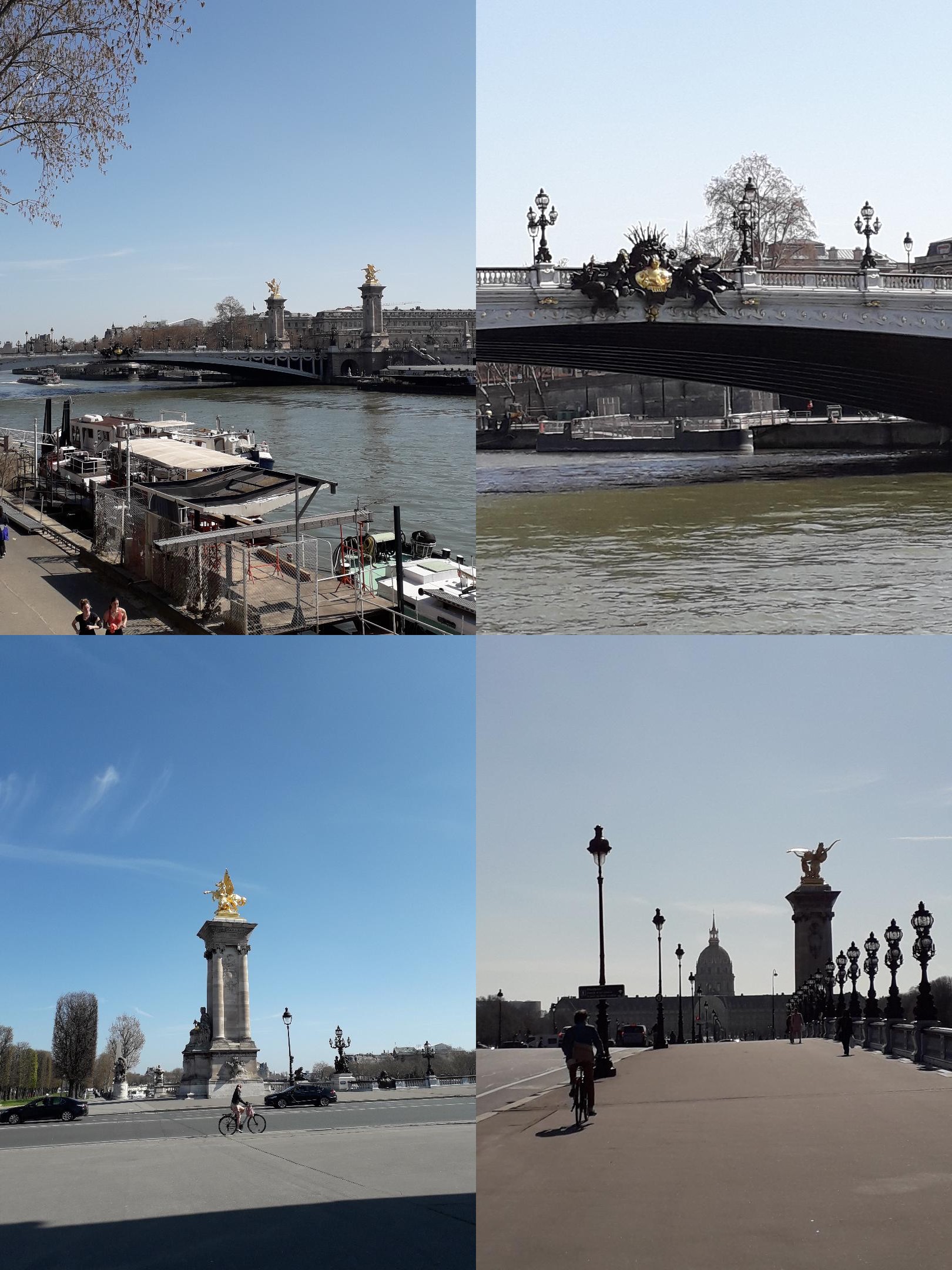 ma promenade du jour (le 24/03) avenue Marceau, une partie des quais, pont Alexandre, passage entre les palais grand et petit, et retour par les Champs Elysées