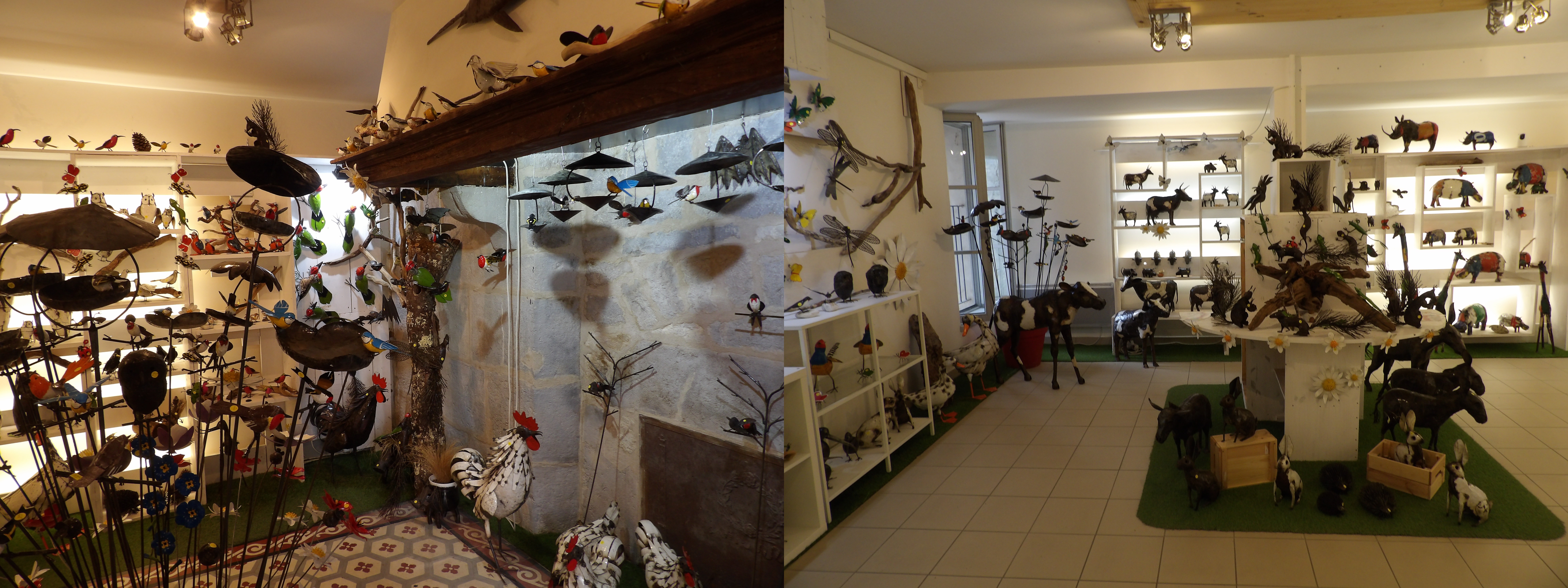 le loup fait partie des expositions, superbe, les autres animaux en ferraille dans une boutique en face de la saline, artisanat solidaire du Zimbabwe, www.lesoizeauxdepassage.fr